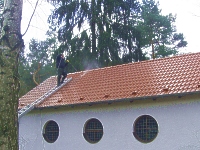 dem Hochdruckreiniger aus. Das Dach wird mit reinen Wasser und einen